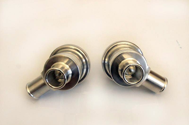 These valves are CNC machined 6061 aluminum which have been precision engineered to fit with the stock or aftermarket F-Hose and intake return hoses. The internal construction of the valve uses a machined piston with proper o-rings to ensure a smooth motion that is air tight to prevent any boost leaks. The spring has been engineered to hold moderate to aggressive boost increases on the 996TT and Cayenne vehicles. The valves feature a 90 degree removable swivel connection for easy fitting with the factory vacuum hose. If needed, the top of the valve unscrews allowing you to re-greased and service the valve. Valves are available in a polished finish and feature the Agency Power text and logo laser engraved on the top. As tested, these valves are a great upgrade for stock K16 or K24 cars and have even been used in our 700HP turbo kits. Valves are sold as a pair for the 2001-2005 Porsche 996 Turbo and Cayenne Turbo.